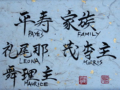 家族皆さんのお名前を漢字にします。ご両親へのプレゼントに最適!。リビングルームに飾る方が多いようです。