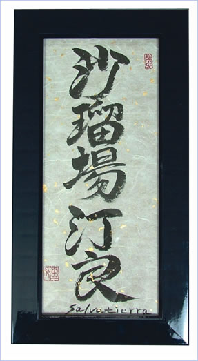 | プレゼントに最適です。母の日やクリスマス、お誕生日にいかがですか?マスター玉舟があなたの大切な人のお名前を漢字にしてさしあげます。またあなたの好きな言葉や大切な人に贈りたい言葉も漢字にいたします。 |